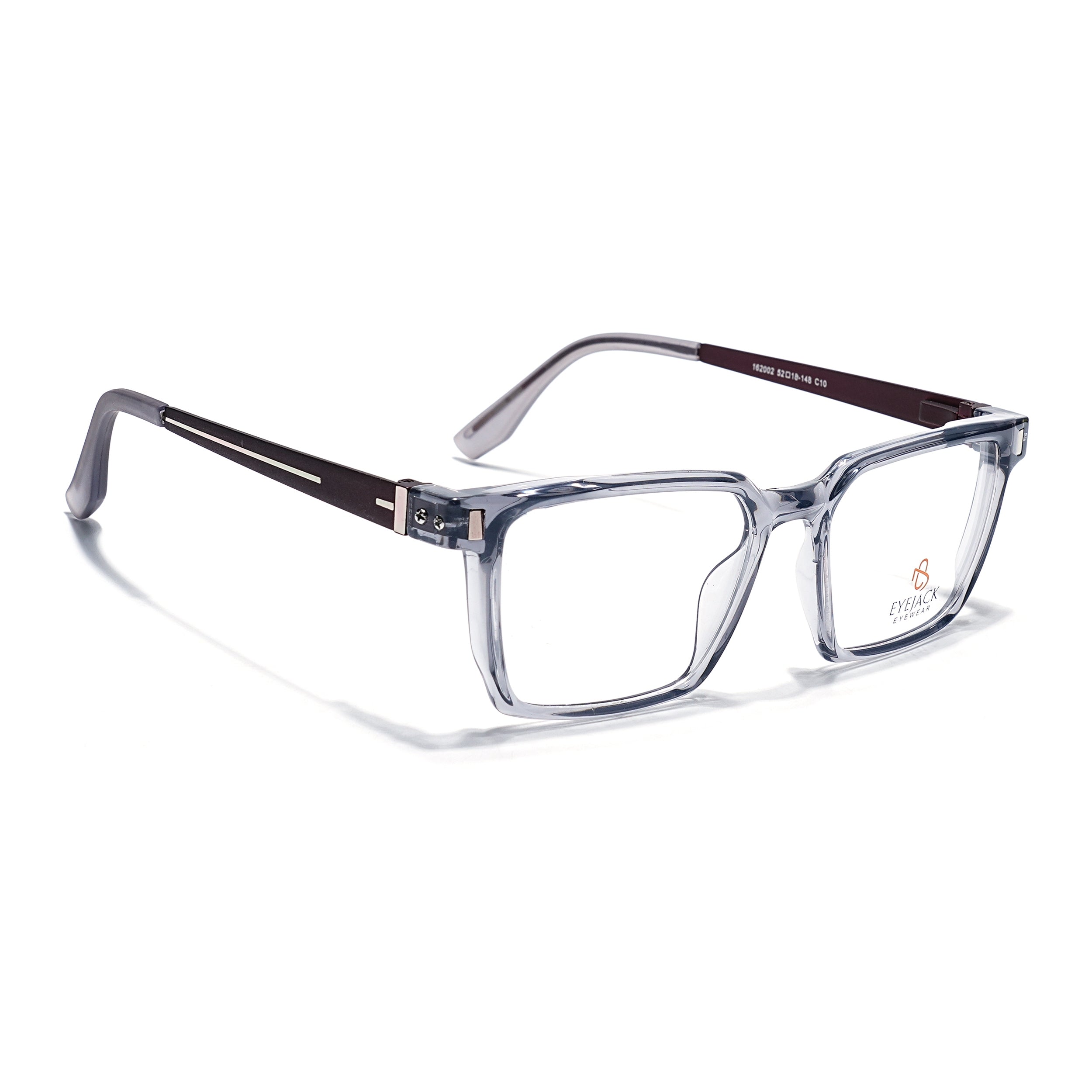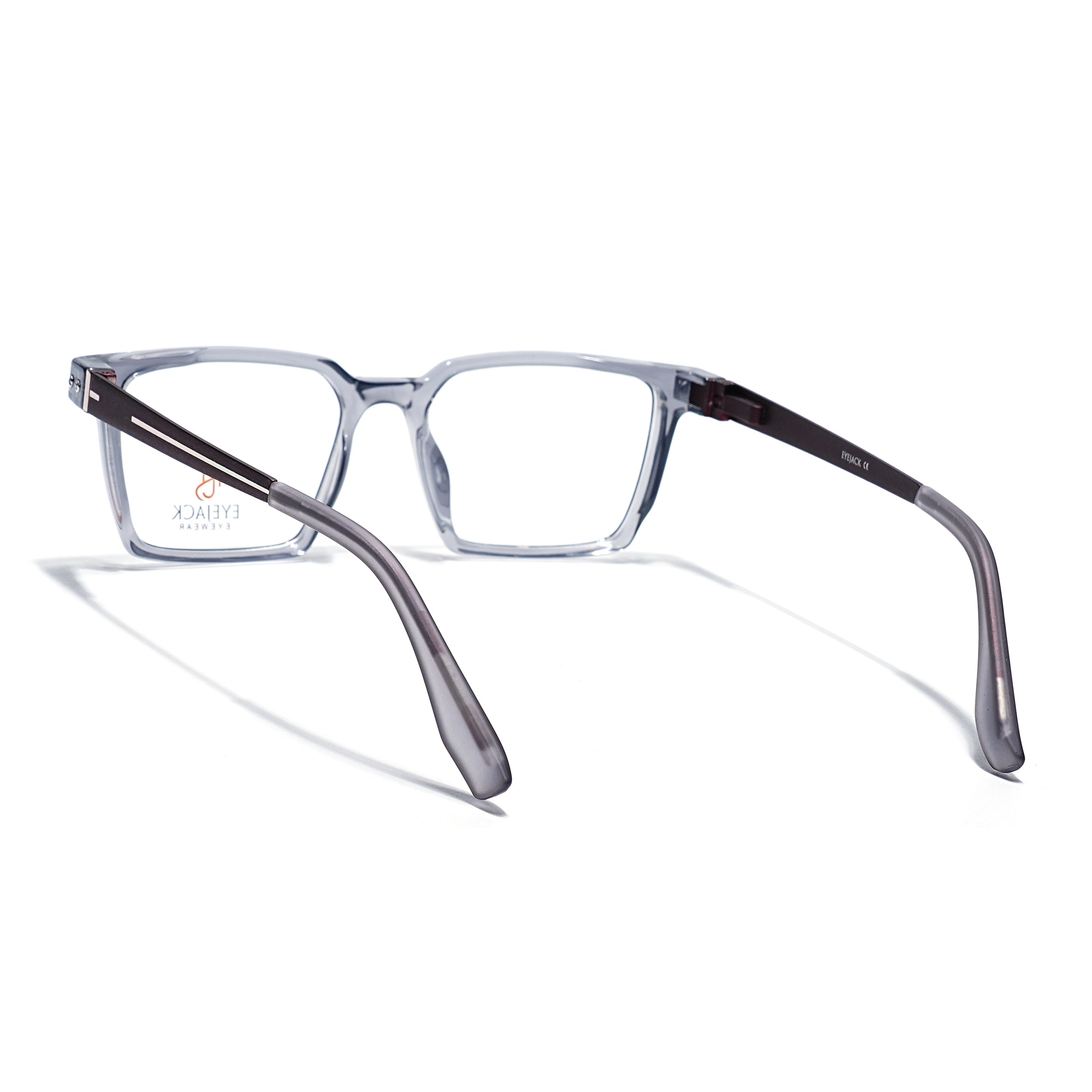 Eyejack Transparent Grey Rectangle Eyeglasses for Men & Women (162002FCL2453)